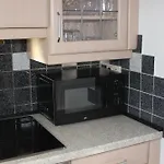 它有设施齐全的厨房和配浴缸 和淋浴的洗澡间.